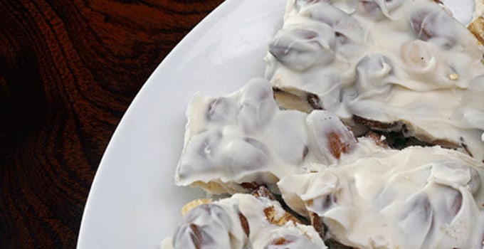 Lightly butter the bottom of an 8x8-inch glass baking dish. In Sweet & Easy, melt candy coating over low heat, stirring until smooth. Add nuts; stir until nuts are compoletely coated. Spread melted candy/nut mixture in prepared dish. Refrigerate until set. Break into bite-sized pieces. Makes about 3 cups.